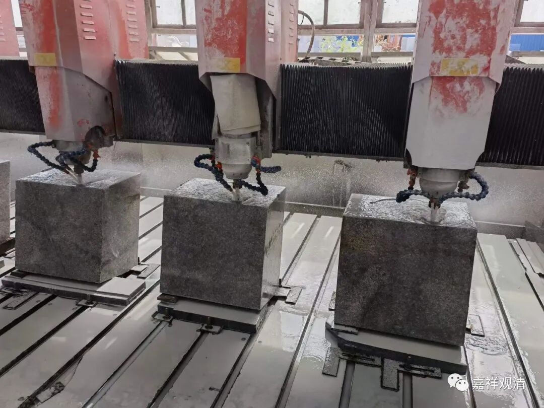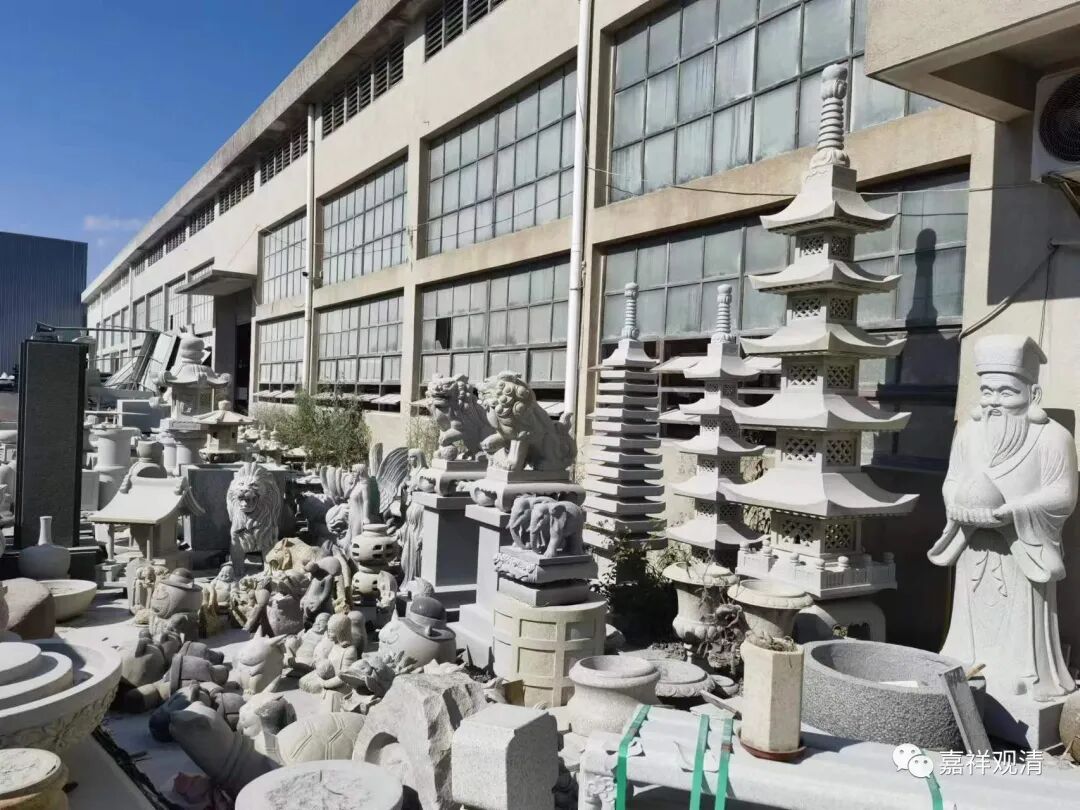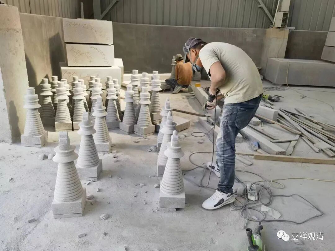 如果石料、建材进出口算粗加工,那雕刻就要算精加工了。老板带着我出来逛了一圈,看了很多早些年前的“作品”,他说,现在从工具到技术到具体细节都要比以前“卷”多了。以前切割用钢钎,现在有各种大型电锯,现在还有数控机床、 3D 打印,各种切割、打磨、做旧工具……工艺水准已经“不可同日而语了”。