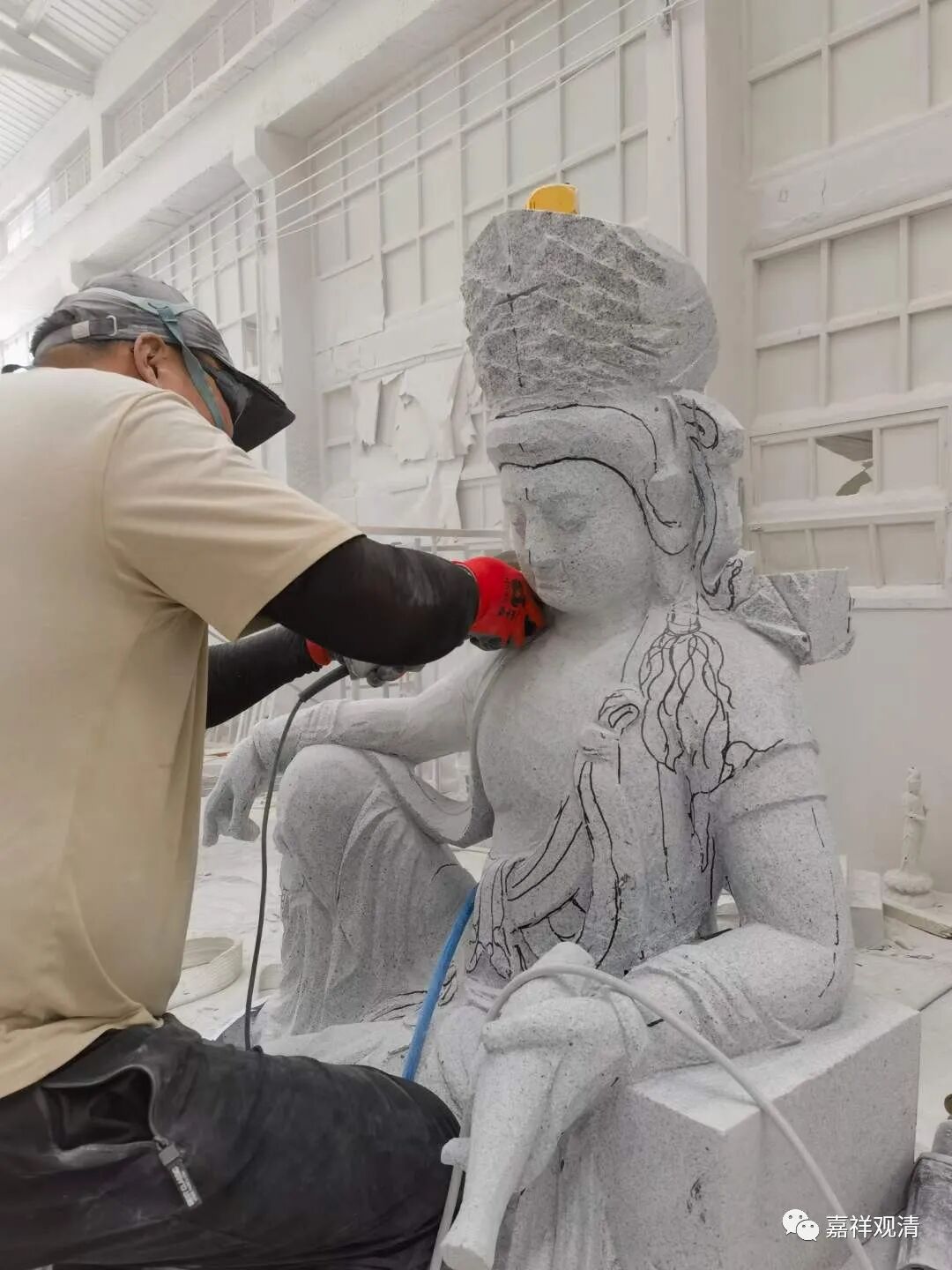 技术的更替中,也牺牲了一批“老人”——(前面说到环保,)最早做石雕的工匠都不太注意自我防护,大多都不戴或很少自觉戴口罩,加上刚进这一行对石料的各种特性不了解,所以有一批工匠大概十年后都不同程度地得了尘肺、肺癌,基本没治,很多都换了肺。现在,老板和工人们都老实了,特别细腻的石料尽量避开,口罩严格佩戴,而且那些专业的口罩都是进口的,“要两百多一个”……老板带我参观的时候,也给了我一个口罩,看着像两分钱的