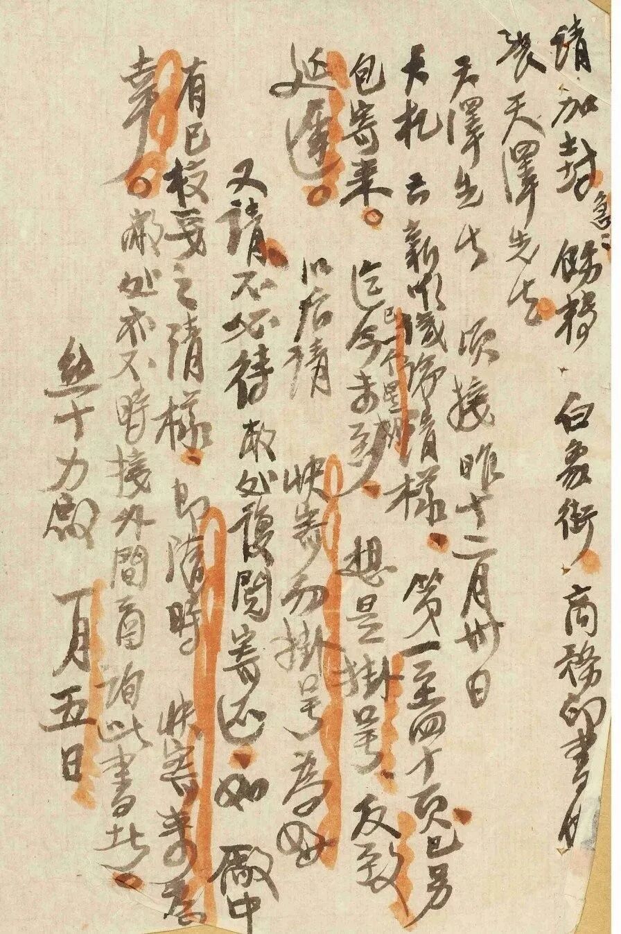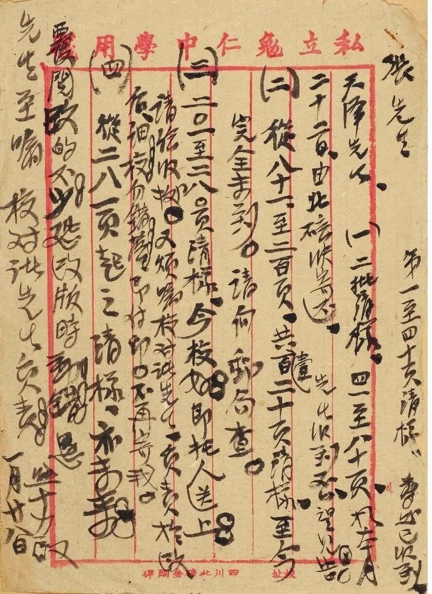 “张先生,第一至第四十页清样尊处已收到。”这一句应该是最后补的。