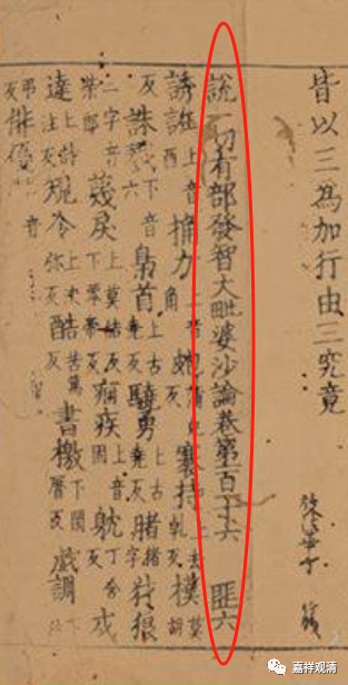 其中,《高丽藏》和《赵城金藏》是源自《开宝藏》的《大藏经》刻经系统(每行十四字),《思溪藏》和《普宁藏》则是源出《福州藏》的刻经系统(每行十七字),两个不同系统的大藏经在这个地方是一致的,并非如《大正藏》校勘记所说地不同。(但每一卷开始和卷末确实是不同,这些大藏经版本里面,卷首都做“阿毗达摩大毗婆沙论”,卷末都做“ 说一切有部发智大毗婆沙论”。)