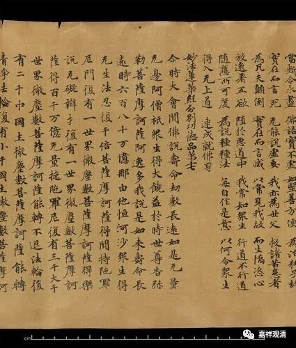 我们看,从“时散论师”的“散”到“时散一切物”的‘散 ” ,中间的文字为“论师作如是说时熟一切大时作一切物时”,共一十七个字,而“十七个字”正是唐写本和自福州大藏经以下大藏经每行的标准字数。