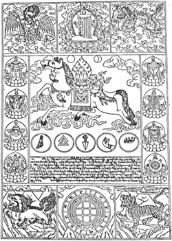 我原先以为“马”就是乾卦,因为藏地“风马”( རླུང་རྟ ,音“龙达”)的标准件上中间就是一匹马的形象。遇到山口或祈祷便撒“风马”,令我想到可能是《易经》里的乾卦,《说卦》:“乾为马”。