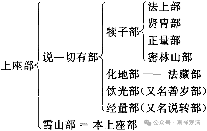 那么我们看 从“ 上座部”最早分出 了“雪山部”和“说一切有部”(还是按照《异部宗轮论》来说)。“ 说一切有部”(在表格第一个分裂当中,)他就说,“其实‘雪山部’和我是不一样的,我才是正宗的‘上座部’, 所以,‘他们’就 不能再用“上座部”的名字了 ,他们是‘雪山部’”有部 说“我才是真正的上座部”,所以呢,原来的上座部就变成雪山部了。