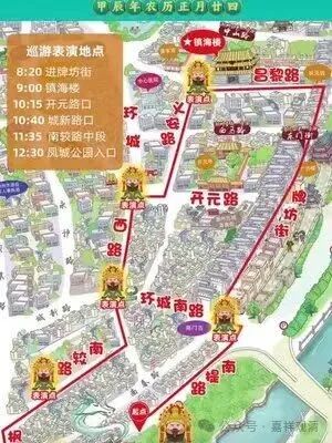 这是巡游的路线图,沿线一多半都是我非常熟的地方,都在开元寺附近,是我经常散步、跑步的地方。(不过青龙古庙我还真没去过,去年年底开会我也忘了去了,那时候太冷,本来还想跑步的,我跑鞋都带上了。)
