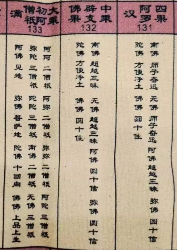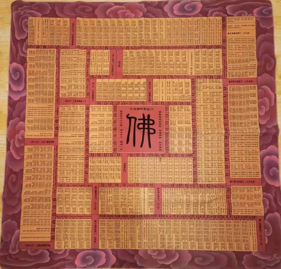 比如行进到“六妙门禅”的方格,假如丢出两粒骰子为“南南”,则进至“兜率天”;丢出“南无”则进至“大梵天”……若此时丢出“佛佛”,则直接进至“圆教的十信位”。