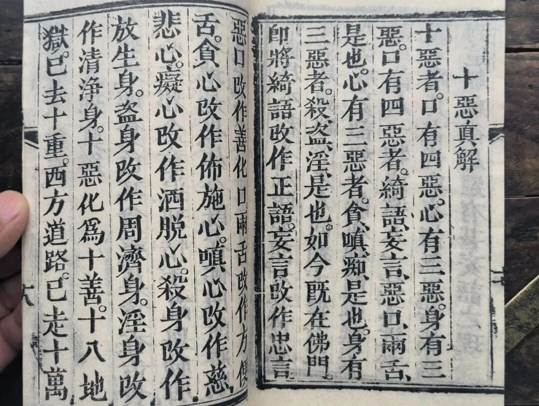 这里,“十恶”的说法和佛教基本一致,只是“意三”中“贪嗔痴”的“痴”,正统佛教里精确的表达应该说“不正见”或是“邪见”——如果把“痴”作为“恶”的话,则在具体的宗教道德实践中有过于严苛之嫌。当然,底层佛教在“十恶”里能背出“贪嗔痴”已经算基本合格了。