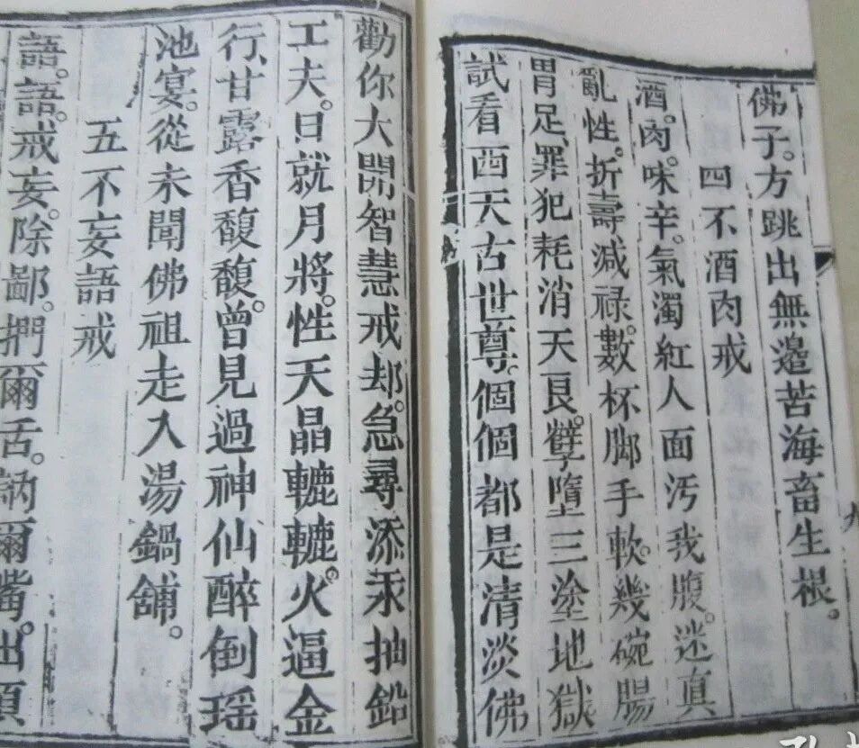 酒肉,味辛气浊,红人面,污我腹,迷真乱性,折寿减禄,数杯脚手软,几碗肠胃足,罪犯耗削天良,孽堕三途地狱,试看西天古世尊,个个都是清淡佛。劝你大开智慧戒却,急寻添汞抽铅工夫,日就月将,天晶辘辘,火逼金行, 甘露香 馥馥,曾见过神仙醉倒瑶池宴,从未闻佛祖走入汤锅铺。
