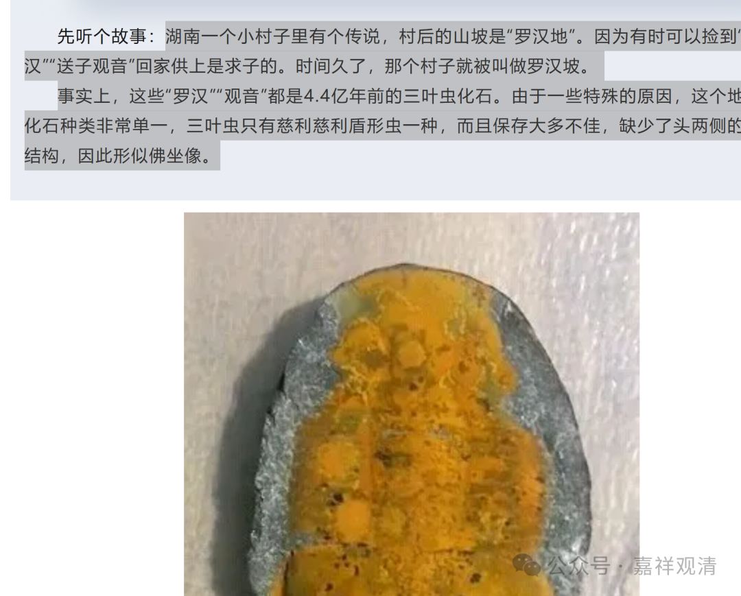据说当地人把慈利慈利盾形虫被当作观音、罗汉。