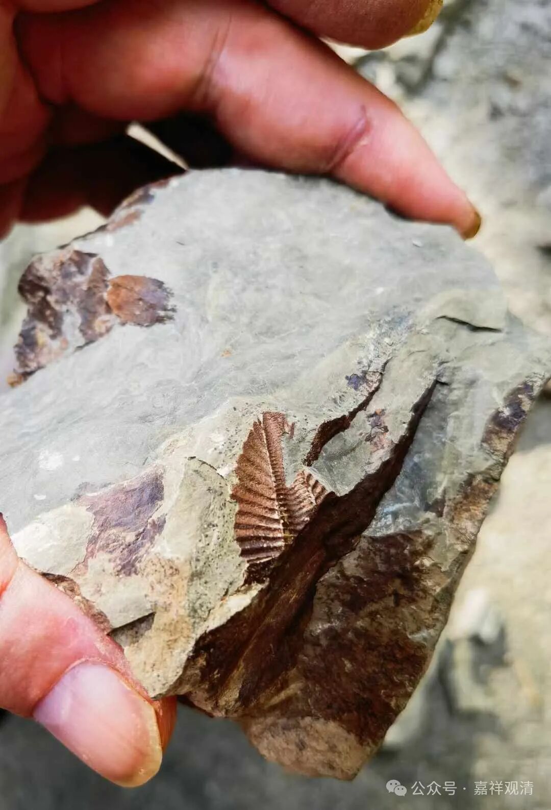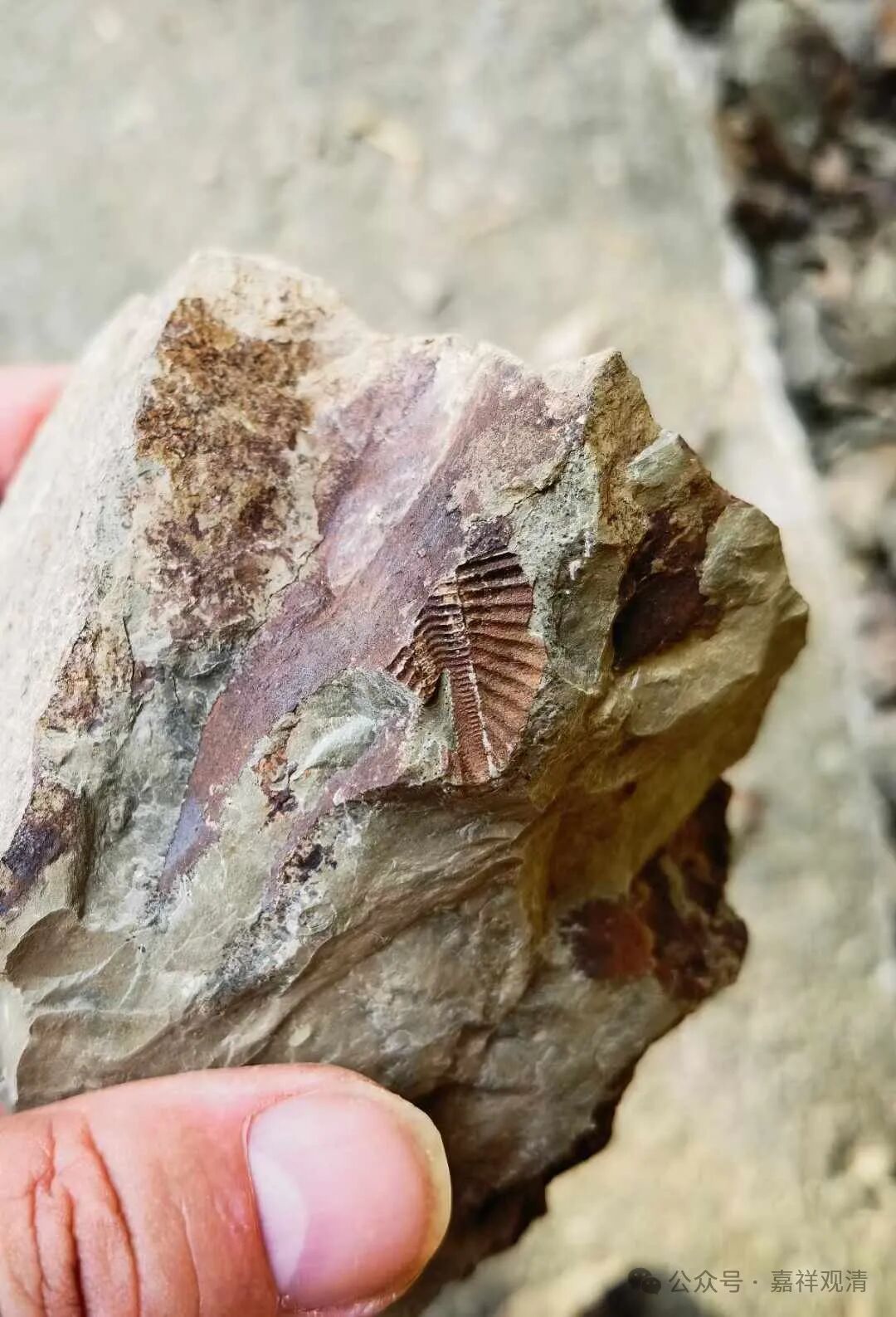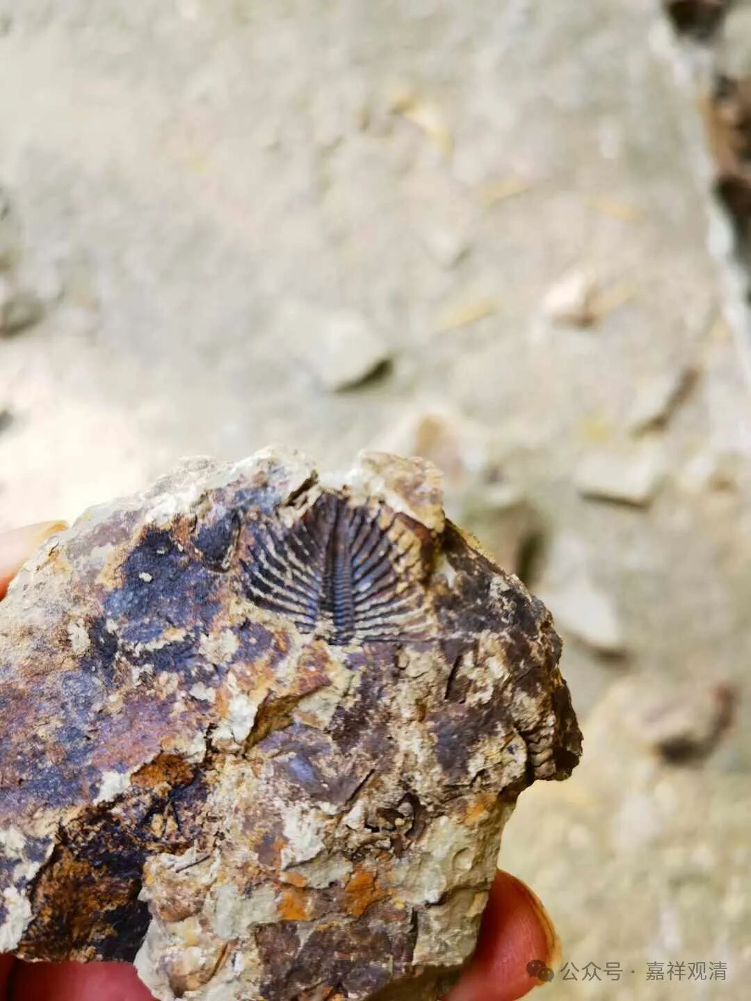 下午住的宾馆在山上,上山的路上,也能随手在路边掏出三叶虫化石,不过这里的石头太松、太碎,手都可以轻松掰碎,所以掏出来的都是些碎片…… 随便拍了点照片留念,就不带回去了。