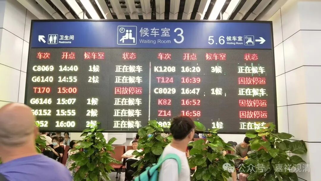 车子一直开到广州,路上潮州人打来电话,说潮州古城已经积水+停电……然后在广州东站临时停车,停了大概有一个小时吧,广播通知说,我们车次停运了……
