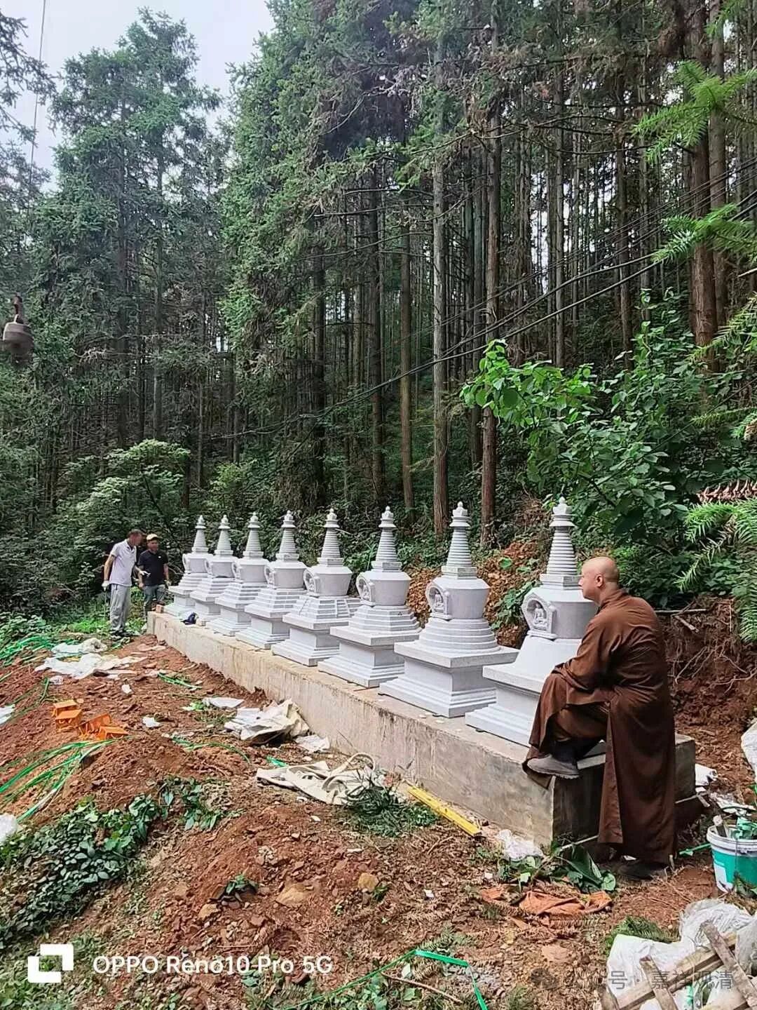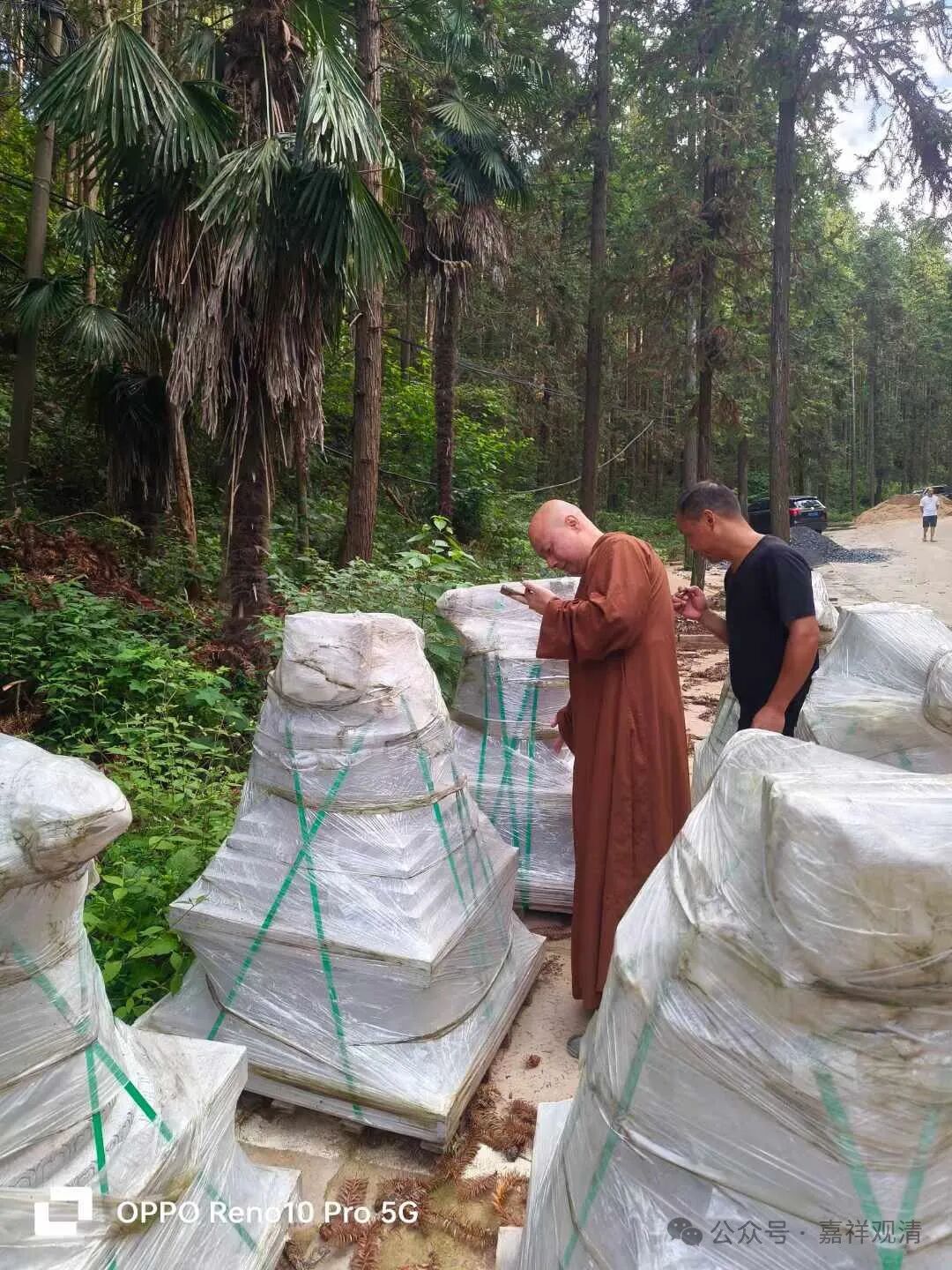 定了一批石雕佛塔,四五月份就送到山上了,但那时候连续下大雨,无法安装……前一段时间又太热,这次赶上开山会,正好。本来今天天气预报说是要下雨,结果之下了一小会儿很小的毛毛雨——那啥,真给面子!谢了!