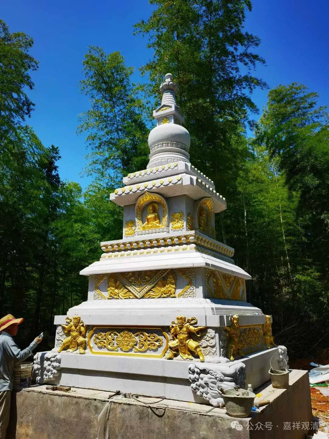 今天回想起来,可能是我刻意低调的原因——江西大寺院不少,我们小小白云寺名不见经传,作为江西的代表(来安奉这 108 座塔之一)底气实在不足,我也不太想出这个风头……但是我一直想建一个这样的塔,自费 + 不挂名就好,后来看到有石质的世界和平吉祥塔,就一直很留意,厦门佛展会上也曾问价过 N 次……
