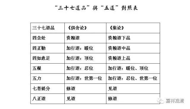 《俱舍》的对应,四念处是对应资粮道,四正勤、四如意足分别对应暖位、顶位,忍位、世第一位则分别对应五根,五力。