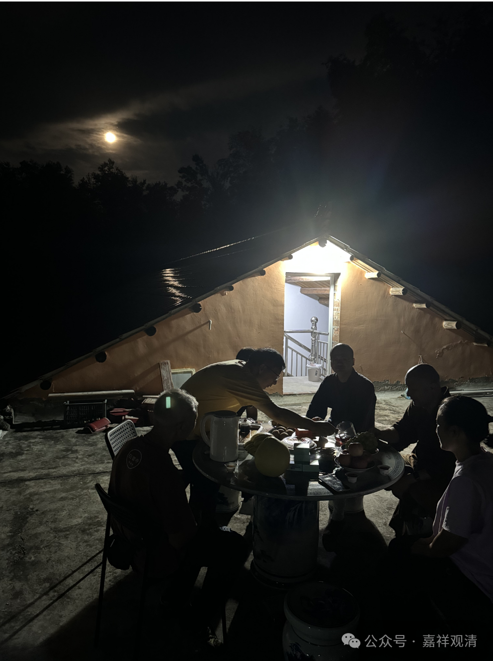 为了今晚的茶话会,老胡今天专门在晒台边装了俩电灯——