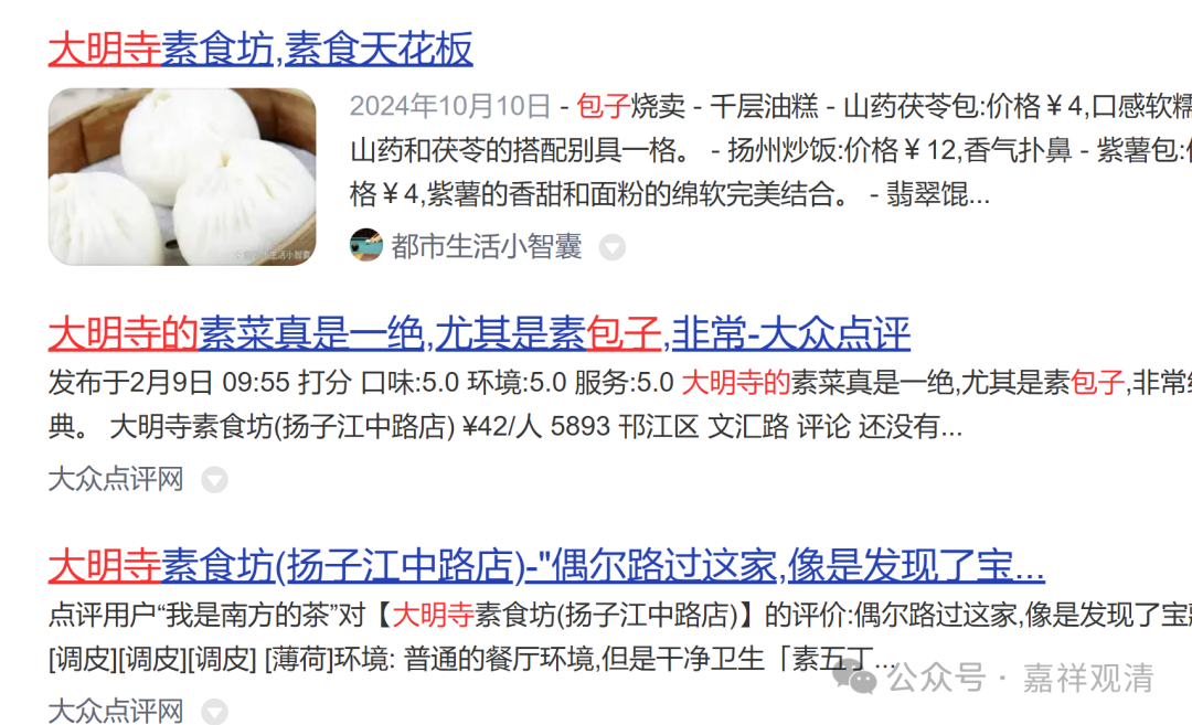 大明寺的素包子很有名,有一次我硬是晚上从江苏盐城的建湖夜奔到扬州大明寺包子店(大明寺素食坊、扬子江中路店)对面住下,就是为了第二天早上吃几个大明寺的素包子 ——我们吃素的,也就这么点念想了。(我去扬州市区,基本上就住大明寺素食坊周围,和梁朝伟的《功夫》一样,“一横一竖”。)