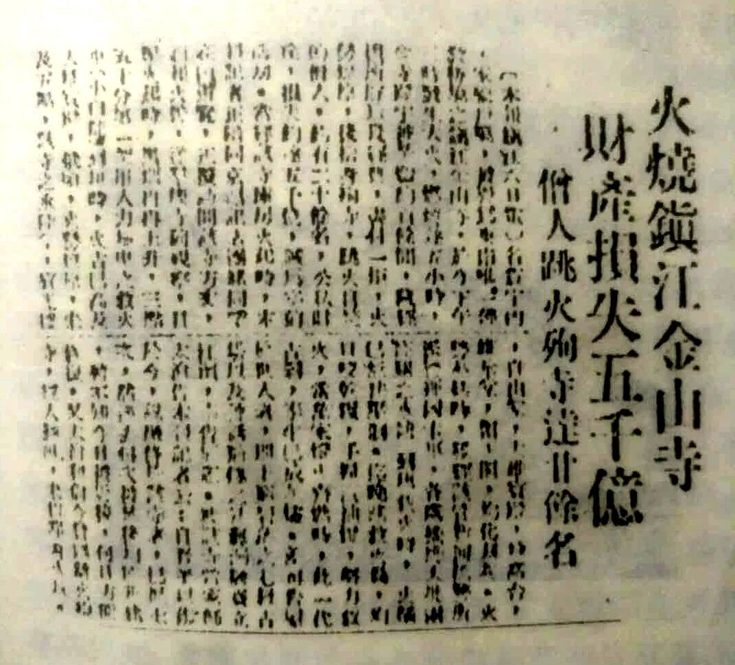 此时有老僧管理不善,整个金山寺几乎都被付之一炬,仅有少量文物、殿堂被保住了。