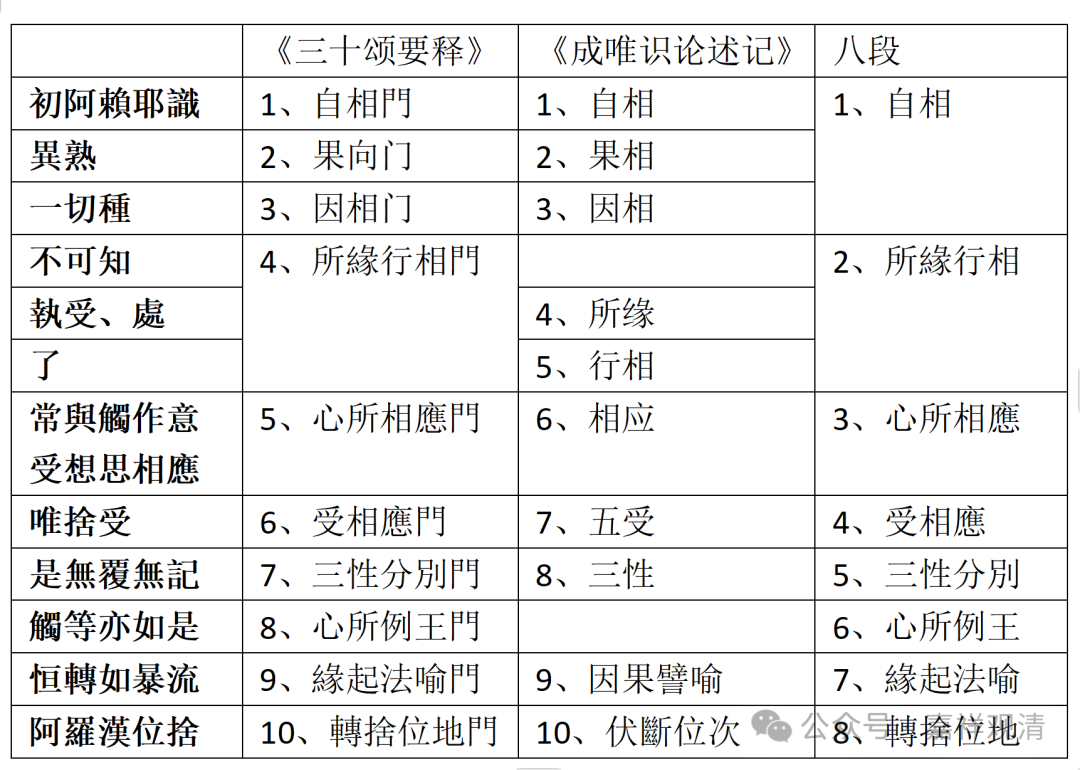 《唯识三十论要释》的文字太多,就不引了,下面出一个对照表,方便大家阅读——