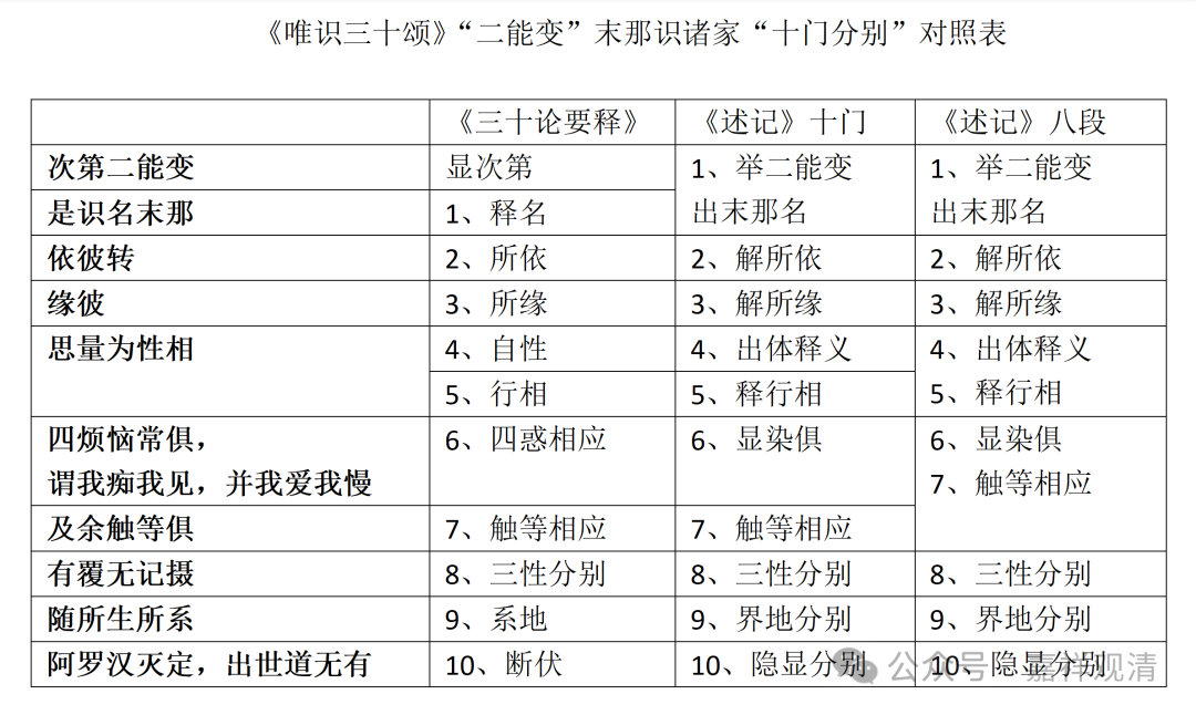 《三十论要释》略有不同,昙旷以初句“显次第”,后别标十门,“十门分别”之内容则与《述记》基本无异。