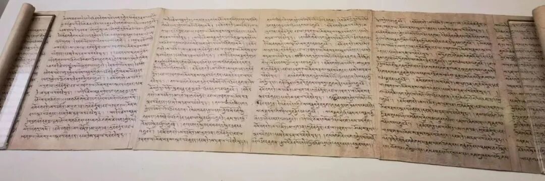 这也是藏文写经,这种可能是前弘期无量寿陀罗尼的写经,纸张式样少见。