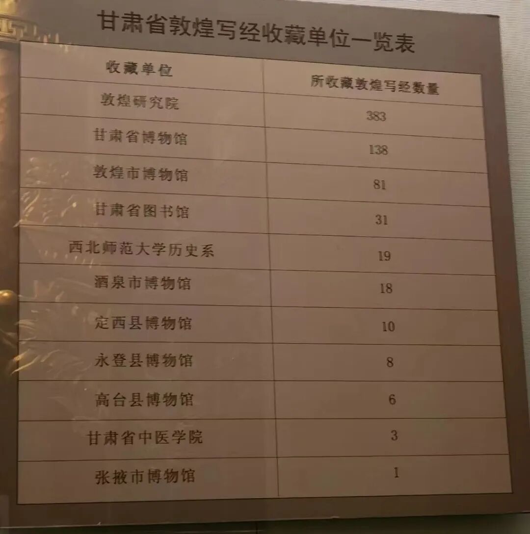 这是一张敦煌写经收藏单位表,仅是甘肃省内国家单位机关的收藏表。