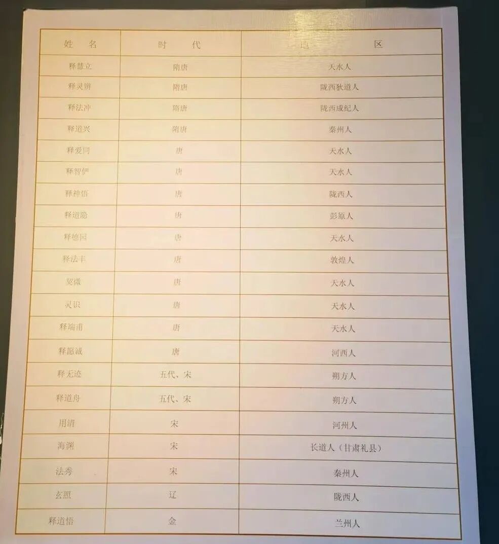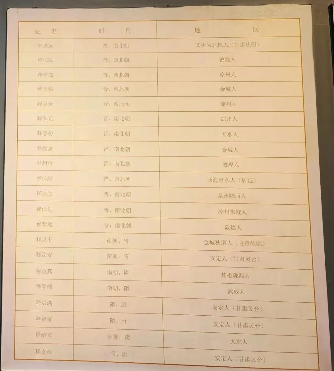 和甘肃有关的著名高僧图。但我更看中这几张表——