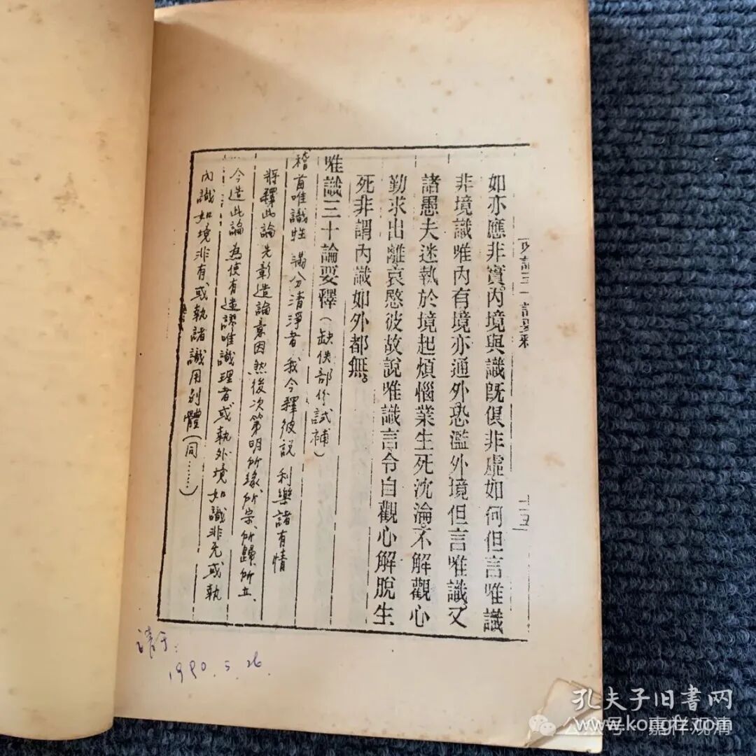 这是网上出让的一件《唯识三十论要释》的本子,是金陵刻经处版本的影印本。这里有其他唯识学者同样用《成唯识论》开篇的这段补足《三十论要释》的。