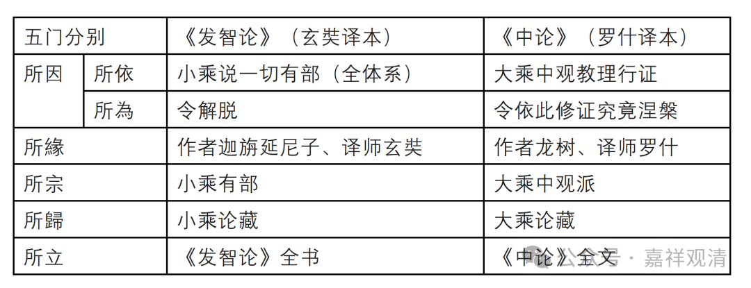 | 五门分别 | 《发智论》(玄奘译本) | 《中论》(罗什译本) |