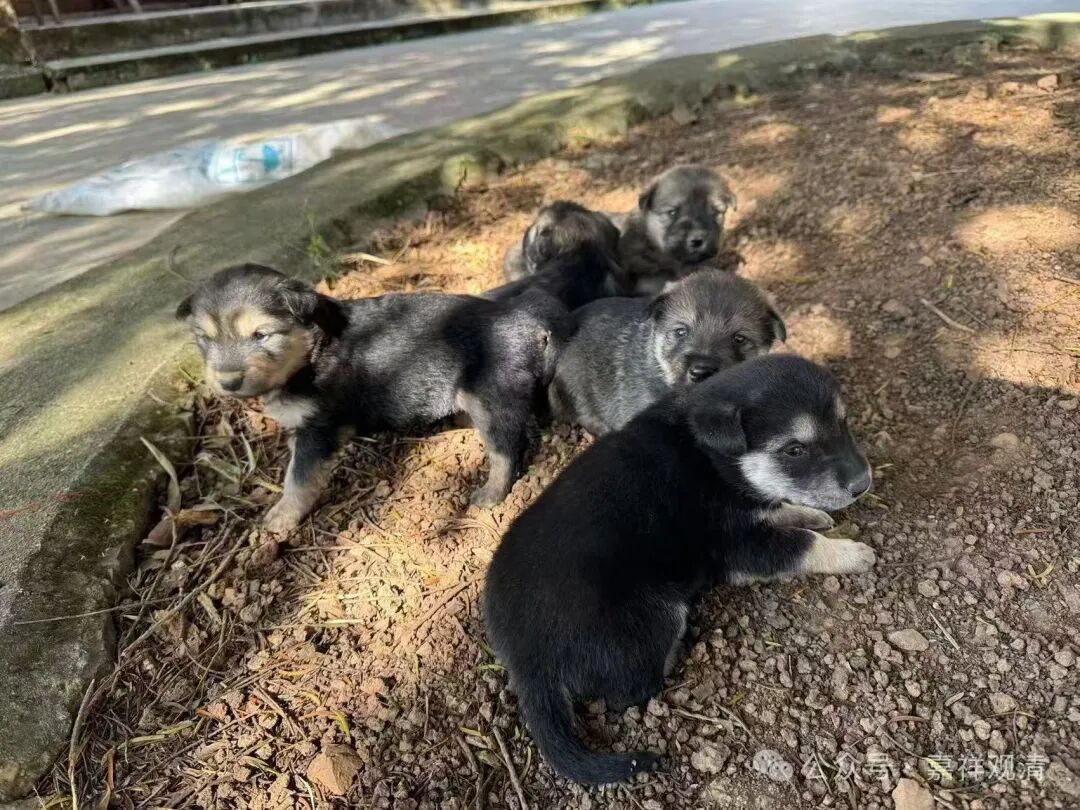 小黑和二黑后来好上了,生了一堆(五只)小狗。