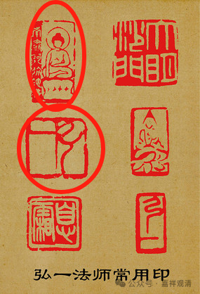 这里有一个同样佛像印和一个弘一法师的章“弘一年六十后所作”。