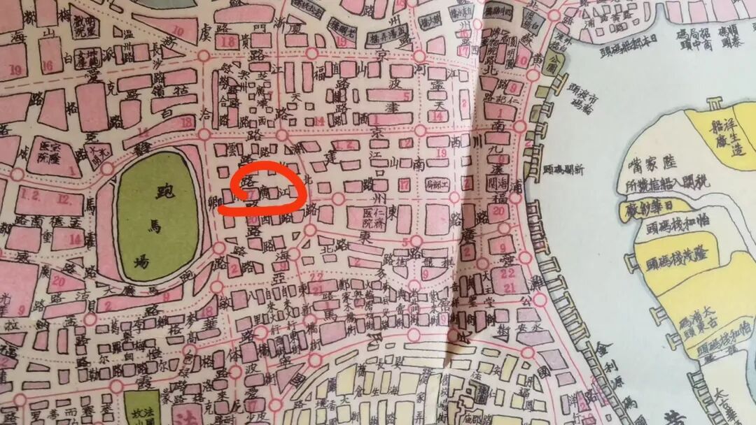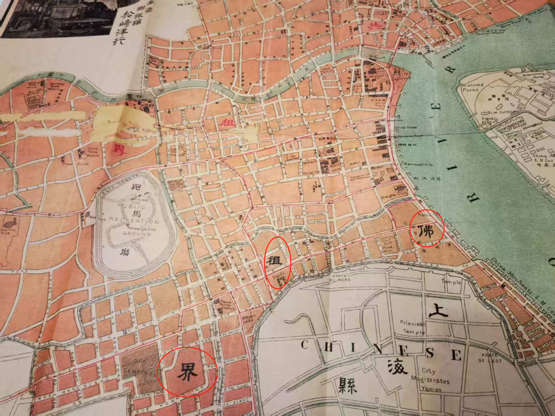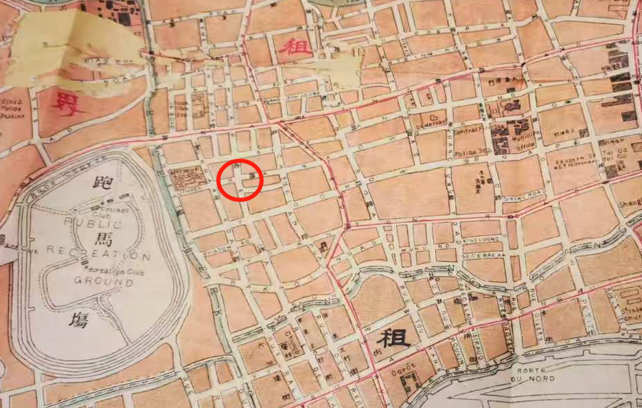 这是 1913-1914 年版的上海地图。圆圈里面就是那个灵隐寺素斋馆上海分部。