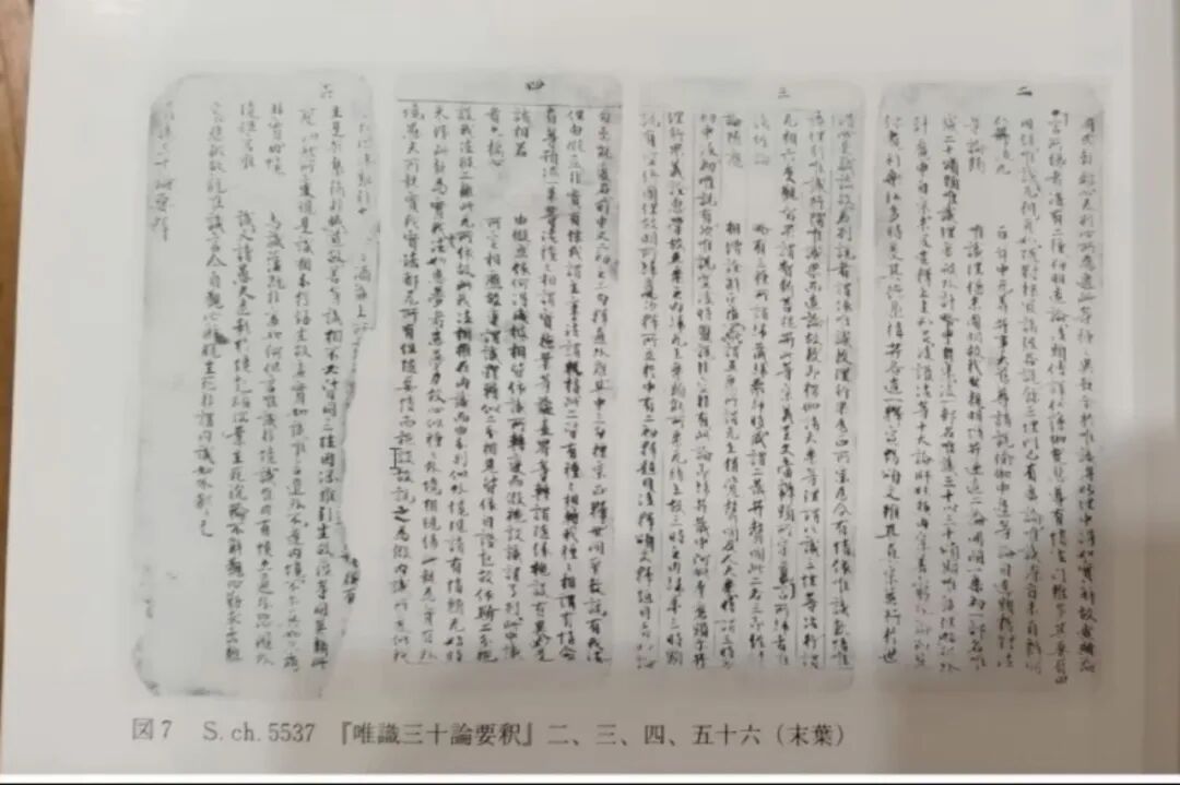 《唯识三十 论 》要释 , 这个敦煌本我没找到,但是我看到一个,我 拿 给大家看一下 , 这个是敦煌本《唯识三十论要释》的一部分 , 这个就有点有趣了。